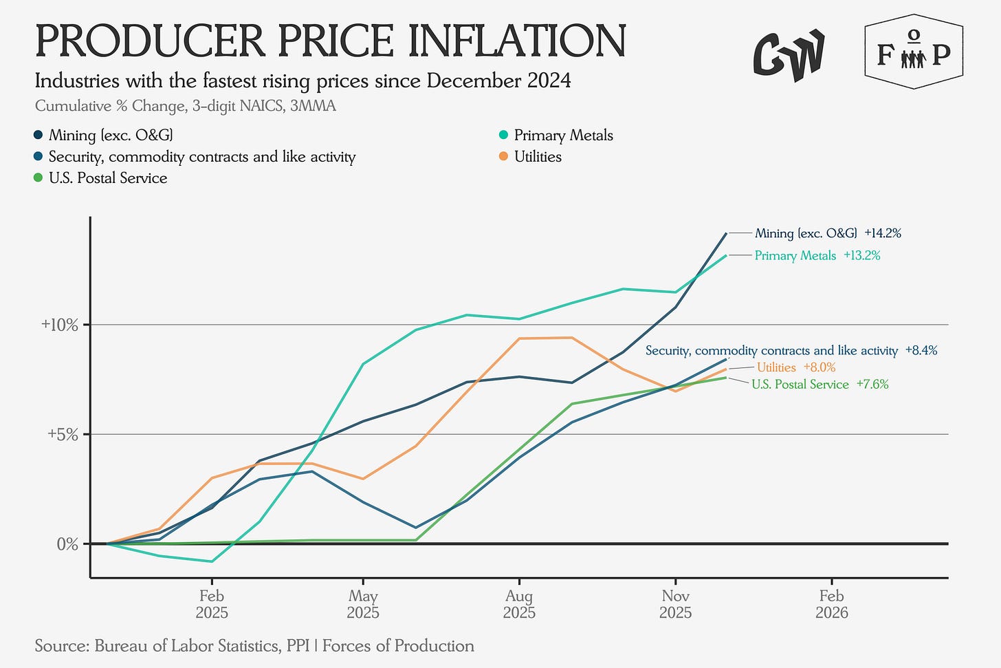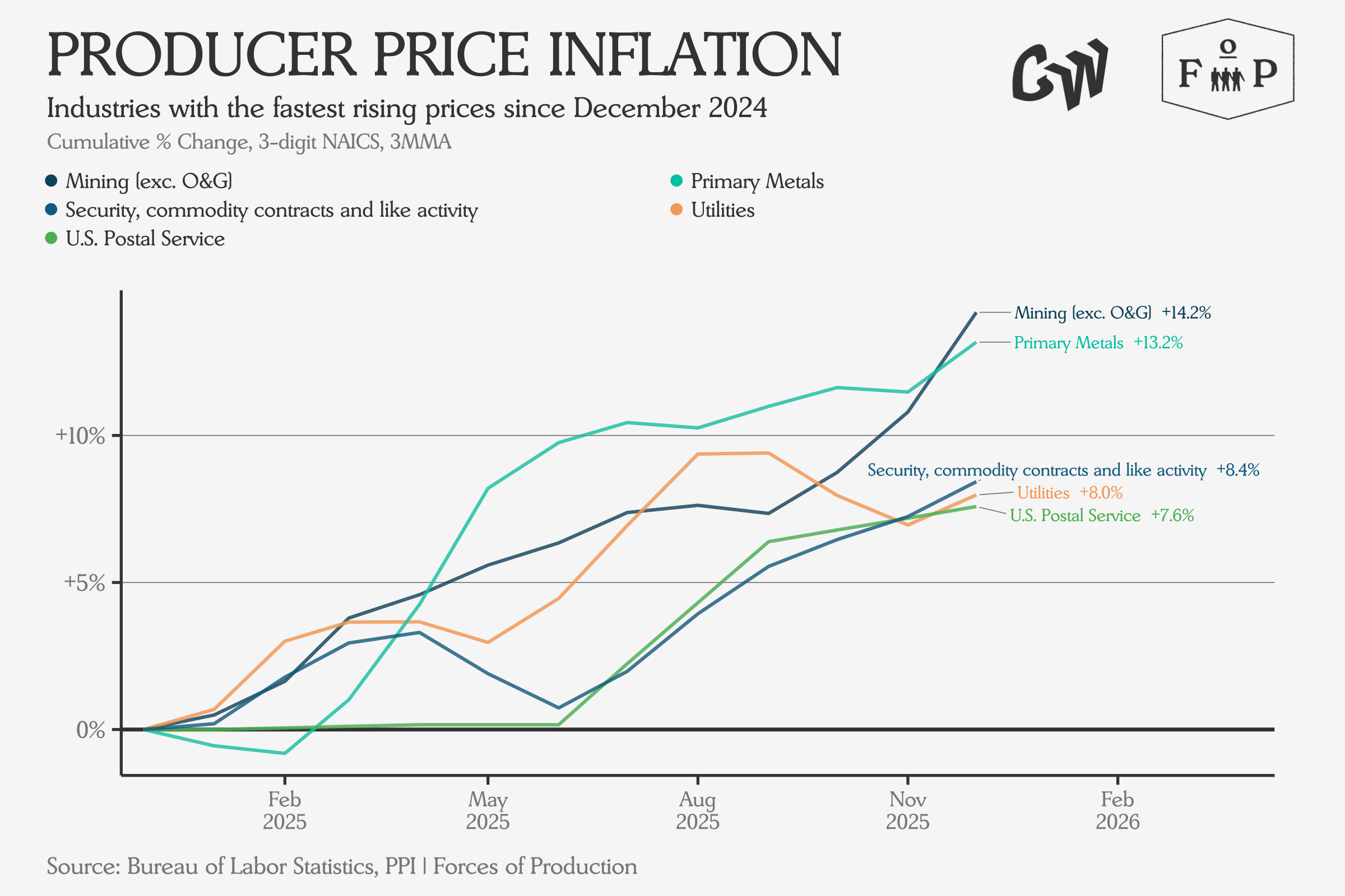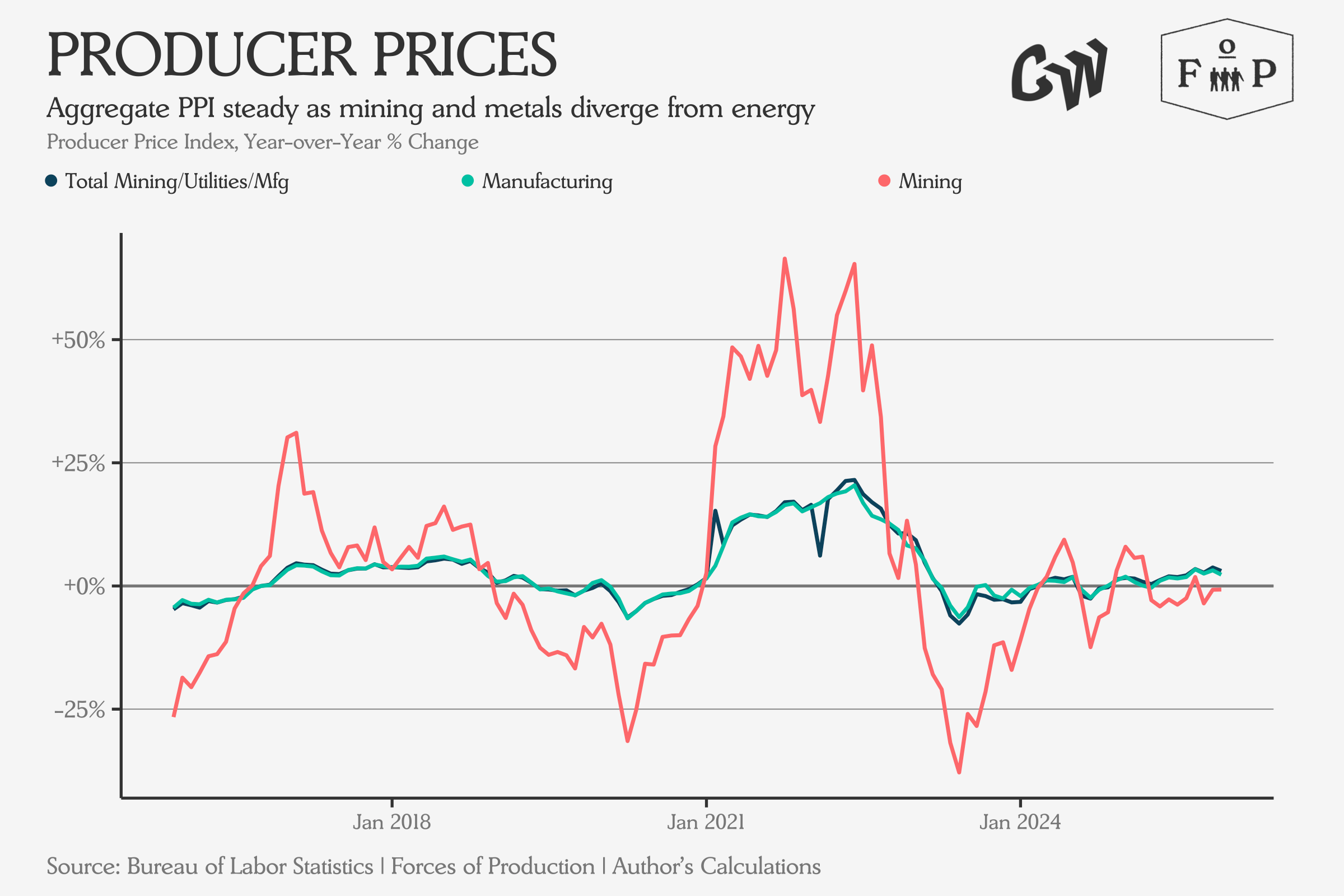 We see the biggest gains in the Producer Price Index at upstream points in the supply chain.