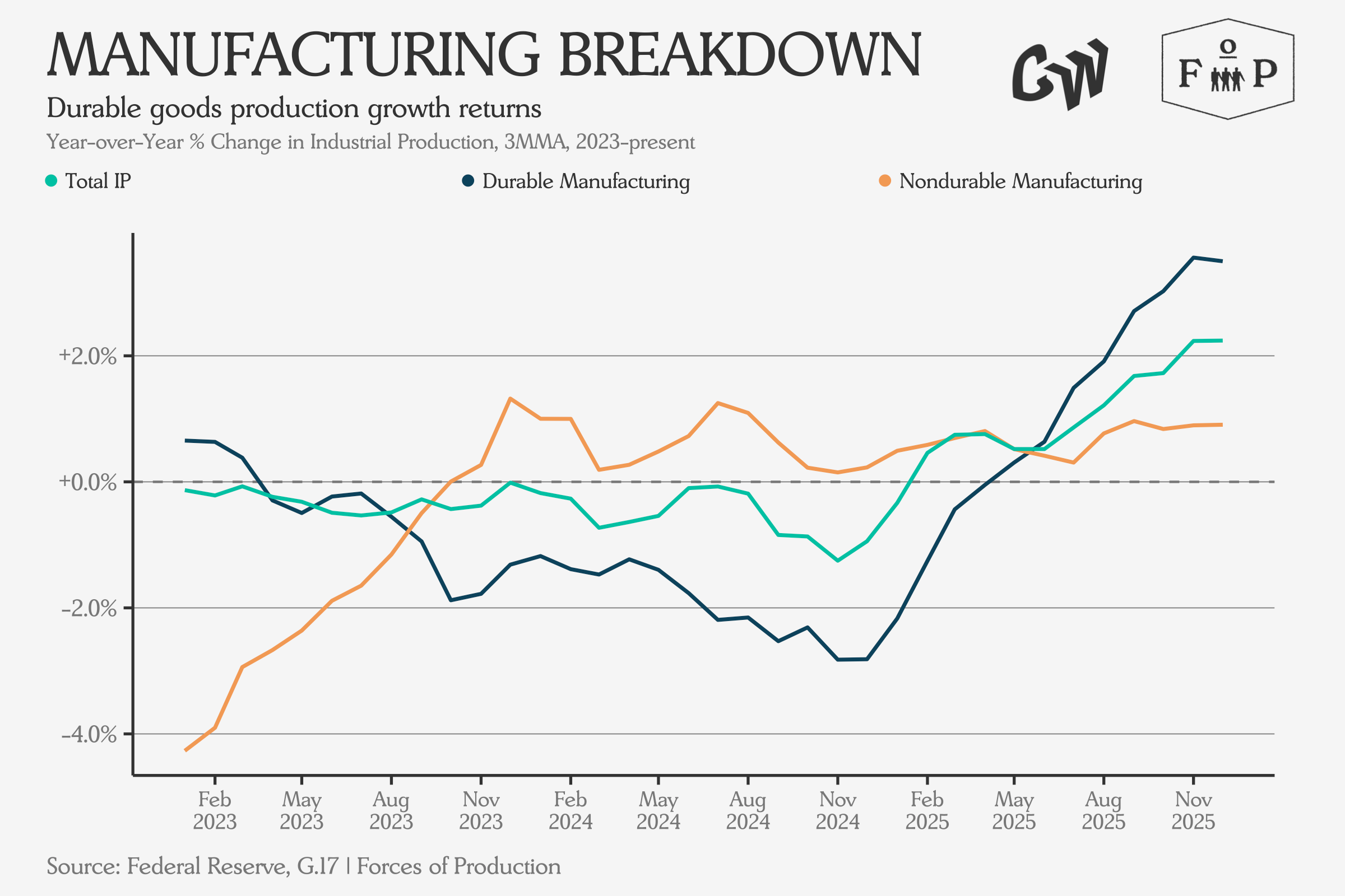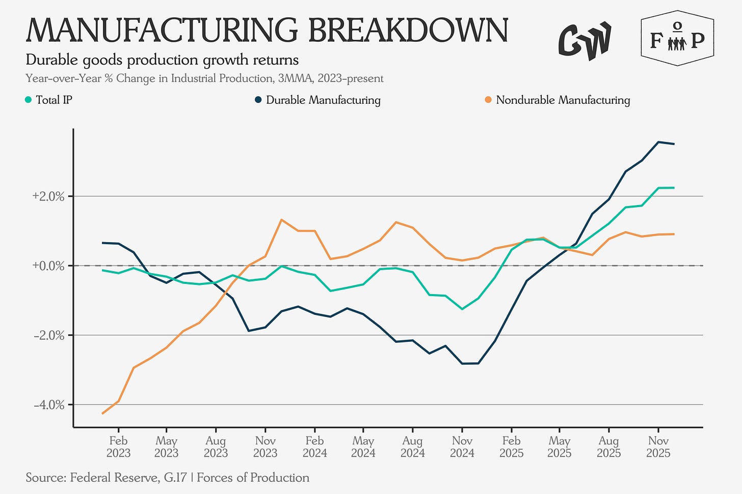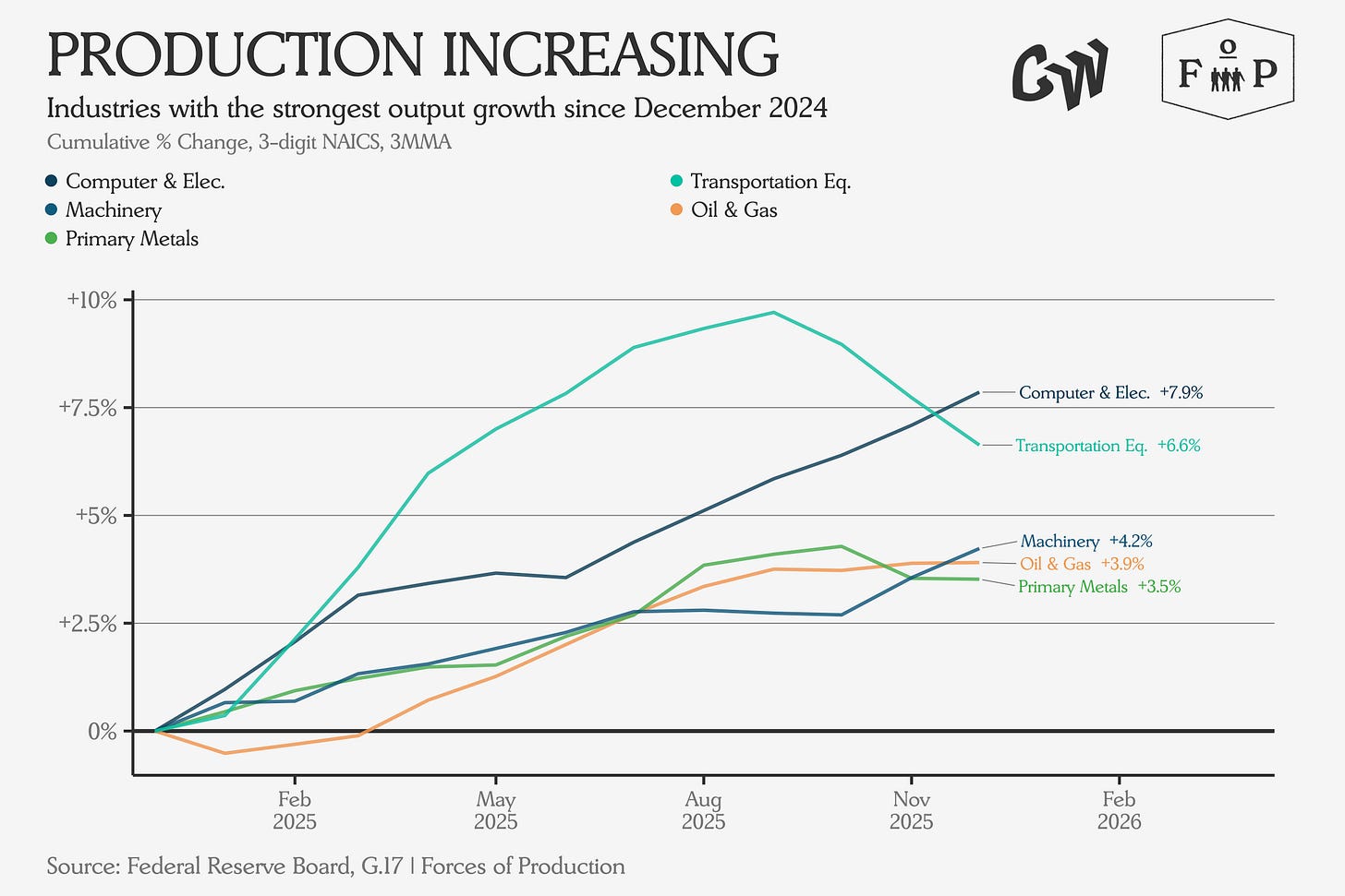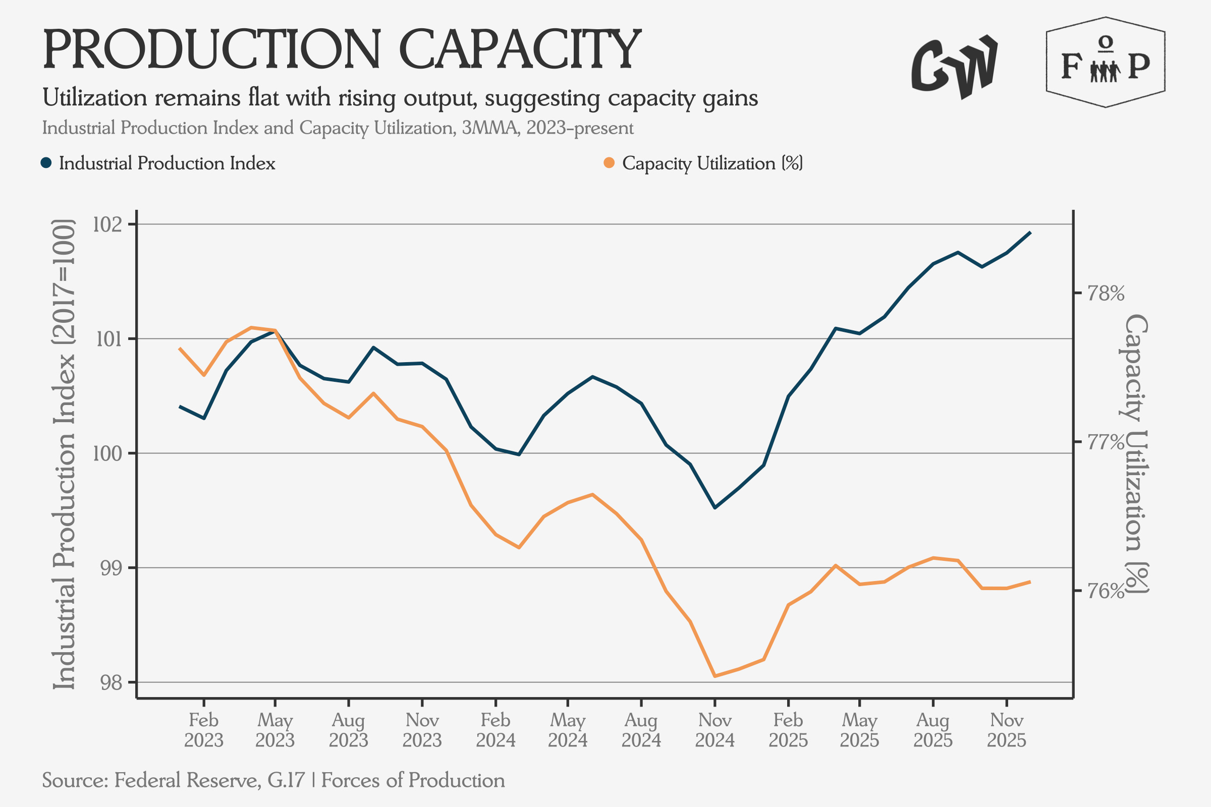 Our work at Forces of Production is to provide monthly tracking on the supply side data of the US economy.